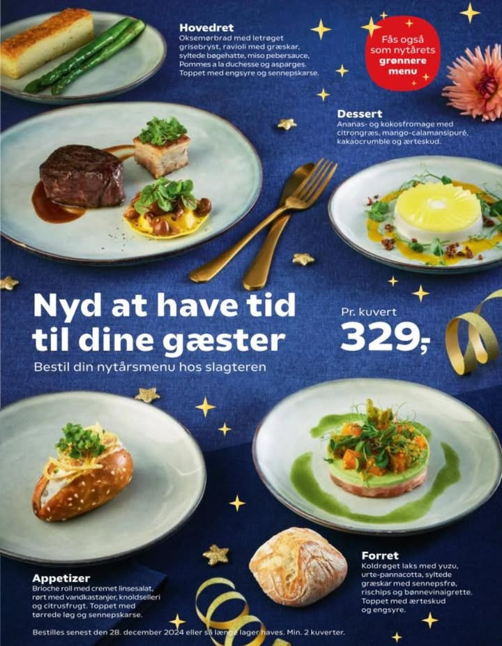 LAD OS STÅ FOR NYTÅRSMENUEN - I samarbejde med kokken Carsten Kyster, er der udviklet en lækker menu bestående af 4 retter med minimal tilberedning og maksimal madglæde