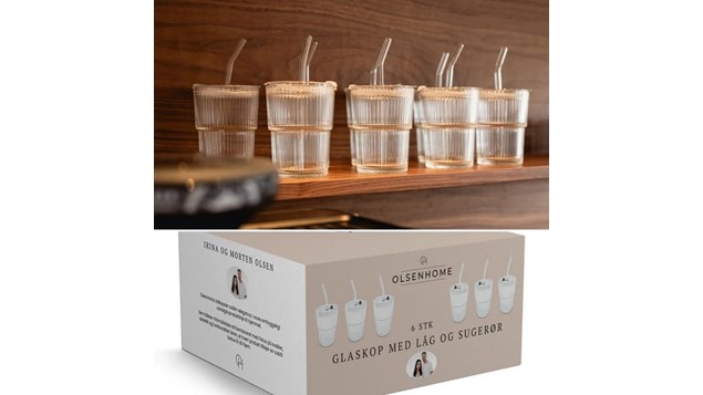 6 stk OlsenHome glaskopper med låg og sugerør